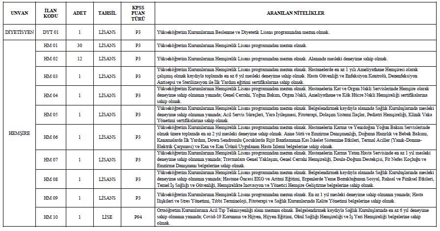 10. 2022 Kamu Personeli Seçme Sınavı (B) Grubu sınavlarından Lisans mezunları için KPSS/P3, Önlisans mezunları için KPSS/P93 ve Ortaöğretim (Lise) mezunları için KPSS/P94 puanı esas alınacak olup, EN AZ “50” (ELLİ) TABAN PUAN ŞARTI ARANMAKTADIR.