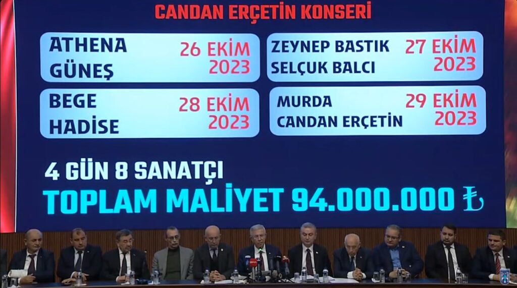 Türkiye gündeminde yer eden konser harcamalarıyla ilgili açıklamaların ardından, Mansur Yavaş 11 gün sonra basın toplantısı düzenleyerek kamuoyuna bilgi verdi. Konser ücretlerinin detaylarını paylaşan Yavaş’ın tablolarındaki rakamlar toplandığında, sanatçılara toplamda 411 milyon 361 bin 353 TL ödendiği ortaya çıktı. Yavaş ise bu eleştiriler karşısında, “Sanki büyük bir israf var gibi ortalığı yaygaraya veriyorsunuz” ifadelerini kullandı.