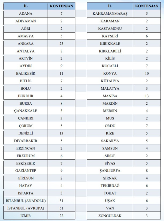 Adana Adıyaman Afyon Ağrı Aksaray Amasya Ankara Antalya Ardahan Artvin Aydın Balıkesir Bartın Batman Bayburt Bilecik Bingöl Bitlis Bolu Burdur Bursa Çanakkale Çankırı Çorum Denizli Diyarbakır Düzce Edirne Elazığ Erzincan Erzurum Eskişehir Gaziantep Giresun Gümüşhane Hakkari Hatay Iğdır Isparta İstanbul İzmir K.Maraş Karabük Karaman Kars Kastamonu Kayseri Kırıkkale Kırklareli Kırşehir Kilis Kocaeli Konya Kütahya Malatya Manisa Mardin Mersin Muğla Muş Nevşehir Niğde Ordu Osmaniye Rize Sakarya Samsun Siirt Sinop Sivas Şanlıurfa Şırnak Tekirdağ Tokat Trabzon Tunceli Uşak Van Yalova Yozgat Zonguldak